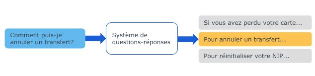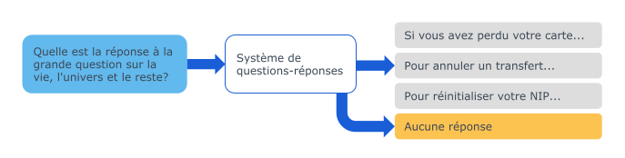 - Un modèle d’apprentissage automatique (un classifieur) accepte en entrée une représentation vectorielle de la question et retourne les probabilités par classe. Chaque classe est associée à une paire question-réponse.