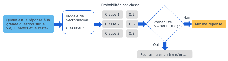 - La probabilité la plus élevée est comparée à un seuil pour déterminer si la réponse sera retournée ou non.