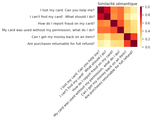 Similarité sémantique de phrases tirées de BANKING77 avec USE. Référence
